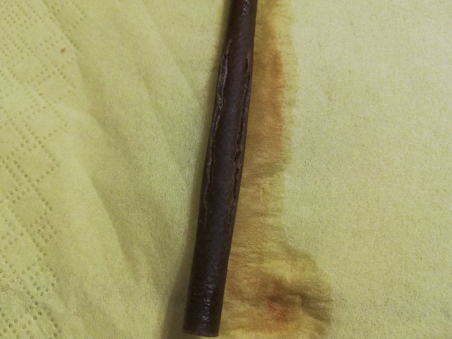 Beim Drücken auf den Strohhalm: etwas aufgeweicht, Struktur dadurch aufgerissen